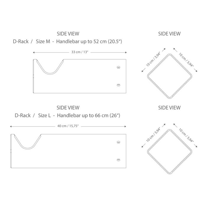 Parax D-RACK je edinstven dizajnerski stenski nosilec za kolo. Izpopolnjeno brušen aluminij, vzdržljiv silikon za zaščito okvirja vašega kolesa in dragocen les ebenovine ali oljke naredijo Parax nosilec za kolo pravi estetski dodatek v vašem domu. Zahvaljujoč inteligentni šabloni za vrtanje in priloženemu pritrdilnemu materialu stenski nosilec namestite hitro in enostavno. Posebnost: tudi kolesa z nagnjenim zgornjim okvirjem lahko obesite vodoravno.