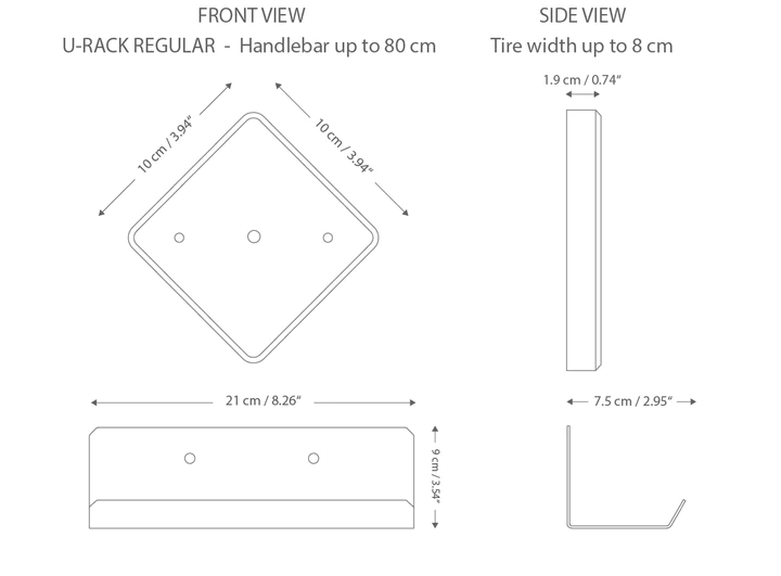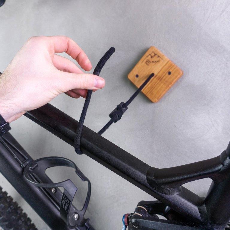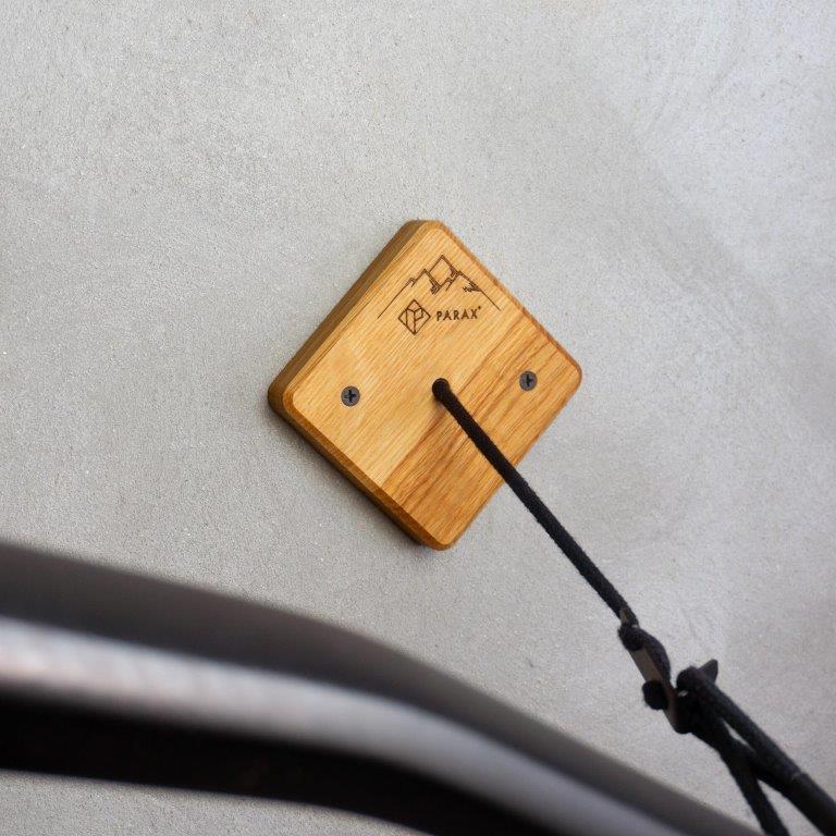 Parax U-RACK je stenski nosilec za vse vrste koles. Ni pomembno, ali imate MTB, žensko kolo ali e-kolo. Z univerzalnim nosilcem za kolo lahko svoje dragoceno kolo pritrdite na steno na prostorsko varčen in eleganten način. Držali za pnevmatiki sta iz lesa in jekla in sta oblikovani tako, da so kolesa varno nameščena v držalih. Vrvica na sidru je nastavljiva, tako da lahko prilagodite kot vašega kolesa na steno.