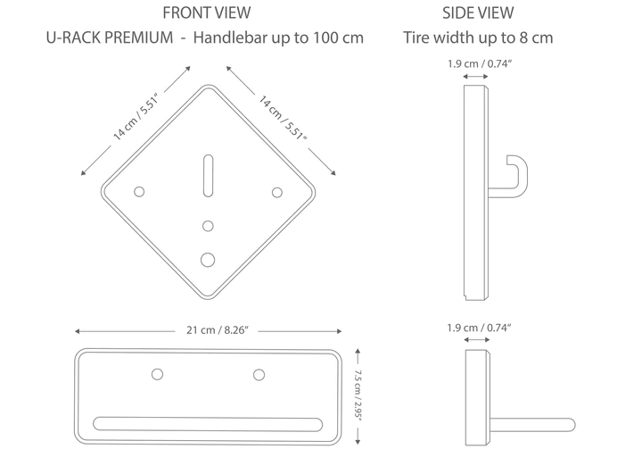 - Mere izdelka Držalo za pnevmatike (ŠxGxV): Premium: 21 x 7,5 x 9,5 cm (x2) | Navadno: 21 x 9 x 7,5 cm (x2)