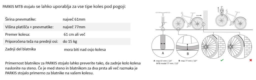 Široke ali ozke gume – ni pomembno. Univerzalna in preprosta različica Parkis za vse vaše potrebe. Izdelan iz anodiziranega aluminija, barvanega, pocinkanega jekla.
