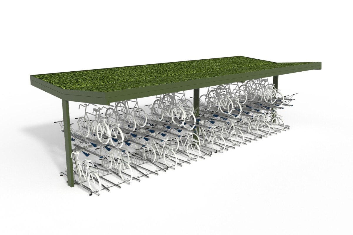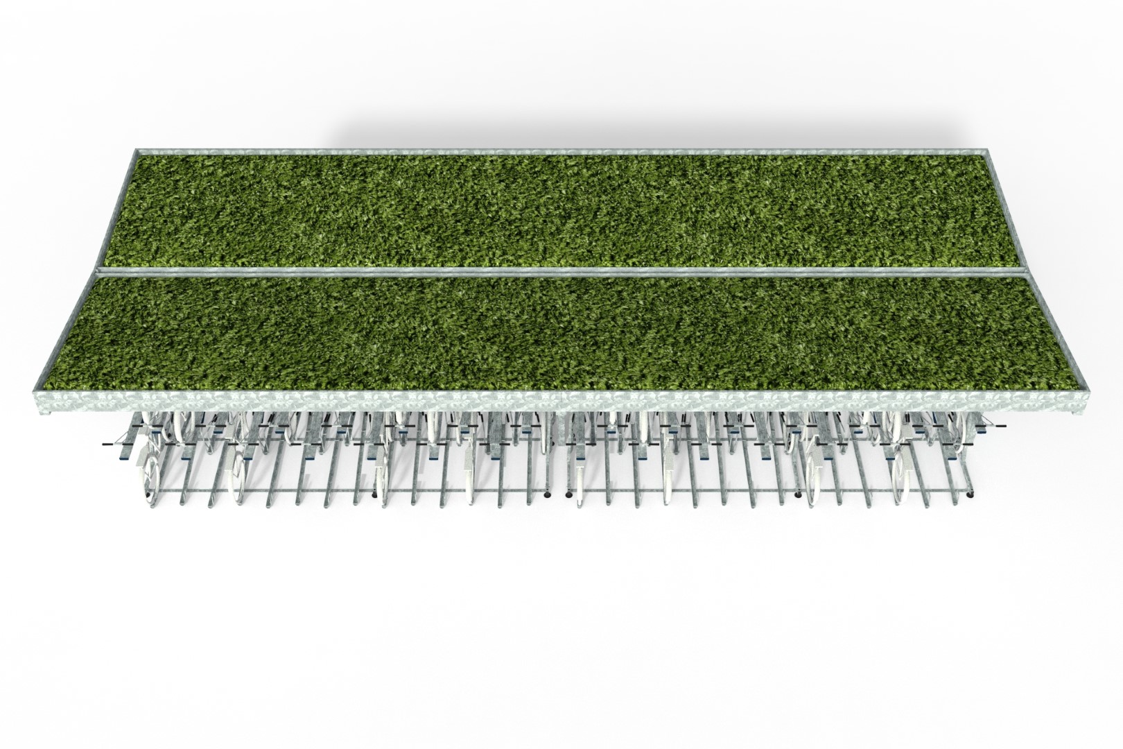 Zelena nadstrešek prihodnosti. Ito Double je eleganten jeklen nadstrešek z zeleno streho. Zahvaljujoč njegovi zasnovi je prostor pod nadstreškom večji. To omogoča, da ta nadstrešek deluje kot nadstrešek za kolesa, nadstrešek za avtomobile ali nadstrešek za igrišče.