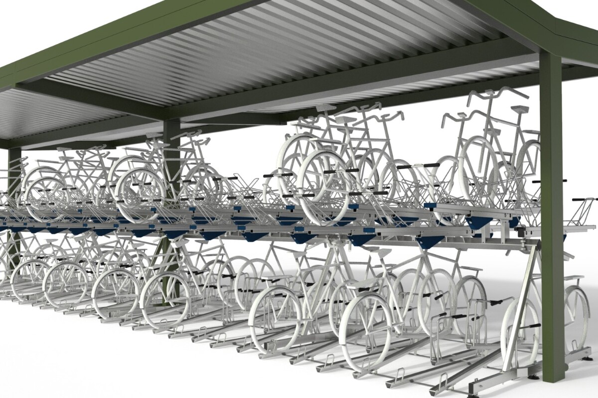Square Domino je prostorna kolesarnica z nekaj stebri. Square Domino je večnamenski nadstrešek z ali brez sten, lahko tudi s tlemi. Poleg tega se Square Domino lahko pritrdi na že obstoječo strukturo. Zato je Square Domino idealen za kolesarnico. Nadstrešek je mogoče kombinirati z našimi nosilci za kolesa in je opremljen z integriranim sistemom za odvodnjavanje deževnice.