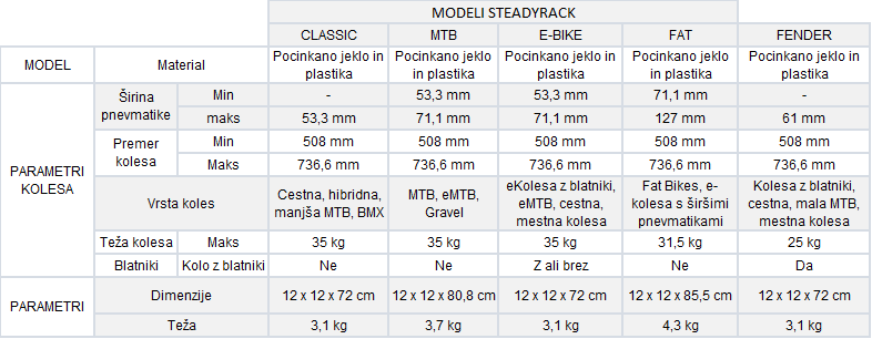 - Primerno za vsa kolesa – Steadyrack stojala so primerna za vse vrste koles s pnevmatikami širine do 12,5 cm.