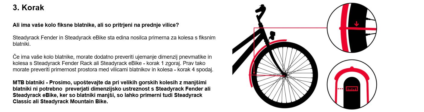 - Na varnem – kolo se tesno prilega nosilcu, ko leži na sprednjem kolesu, s čimer se izognete možnostim poškodb okvirja ali platišč.